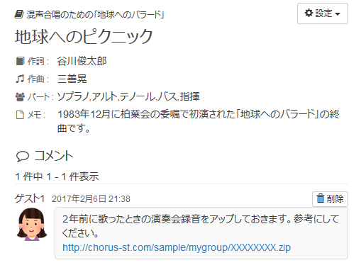「あの情報どこだっけ…」“楽譜の訂正”や“外国語曲の日本語訳”などは楽曲ページに残すことで、途中から参加した人のキャッチアップも最大限サポート。
